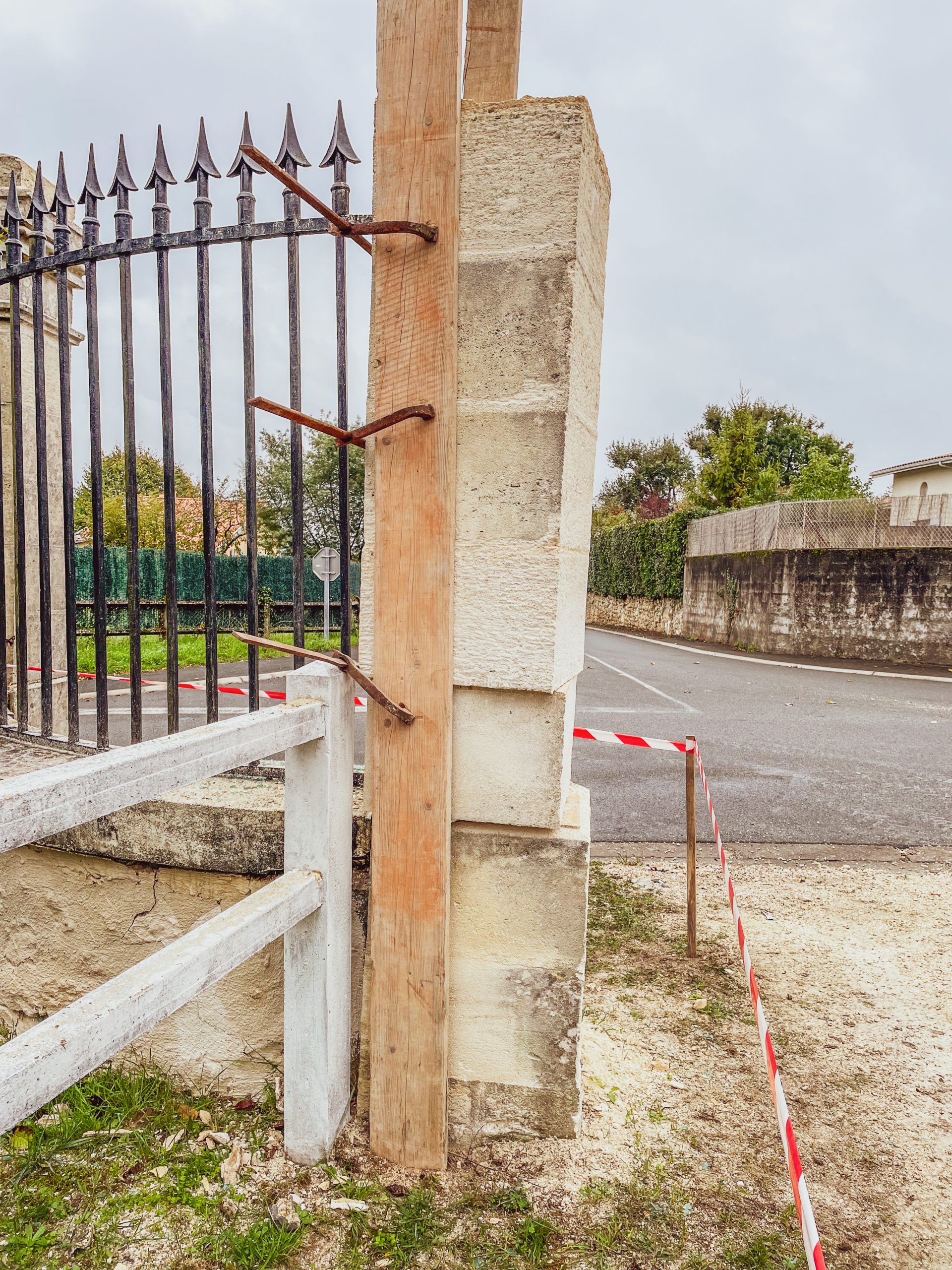 A la suite d'un sinistre, un pilier et le muret de l'entrée d'un château ont été endommagés. BIGBAT est intervenu pour la réfection du pilier et du muret.